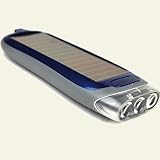 The eGear Solar Pull flashlight recharges using the sun, or by pulling it's dynamo cord. Great for camping and backpacking, or as an emergency light in car or office because it recharge hundreds of times. Fun product for kids who forget to turn their flashlights off during that backyard sleepover. Full sun charging for five hours yields 30 minutes of 15 lumen light with three LEDs. Will also charge indoors! One minute of pulling yields 18 minutes of 15 lumen light with three LEDs. Warning at end of cord so unit doesn't get overpulled. Uses a rechargeable lithium battery which will lasts for hundreds of recharges, and can easily be replaced after fatigue. Splash water resistant. Includes wrist lanyard for hanging inside a tent or carrying. Weighs 3.2 ozs. Just 5.5 inches long x 2 inches wide, and less than an inch thick.
