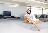 Best Buy Wallmonkeys Peel and Stick Wall Decals - Cute Female in a Bath Robe in Her Living Room - 18"W x