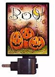 This is a very fun Halloween night light! The image is by talented artist Anne Tavoletti. This light makes a very unique gift and perfect as a stocking stuffer, office gift, or grab bag gift. This is a very popular light and will look great in any room in your house! This photographic image is printed in the USA using high quality inks. **PLEASE NOTE** Unlike cheaper night lights, the light bulb on these decorative lights are fully enclosed! No more seeing an exposed bulb when looking at the night light from the side. You'll love the richness of the light as it provides you with both safety and improved visual attractiveness. This is an extremely well built and solid unit! Unlike cheaper models, this bulb is FULLY ENCLOSED for safety and visual attractiveness. Plug can be rotated to accommodate outlets in any direction. Glass front for vivid visual display. Additional replacement bulb is included with each light (7 watt "night light" bulb). Unit is fully U/L approved.