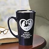 Believe Nativity Mug. The perfect mug for Christmas morning! The Believe Nativity Mug features a double-sided design. One side reads Believe with a silhouette of a manger scene with a heart bordering a silhouette of the Holy Family with Believe in the Lord Jesus and you will be saved. - Acts 1631 underneath. Ceramic. 16 oz. Hand wash. OTC