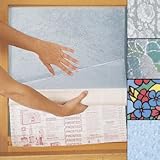 Add privacy to any window and still enjoy the sunlight! Self-adhesive window vinyl in four delightful patterns adheres instantlyresists moisture and heat to stay intact. Lets natural light shine through ideal for bathroom, bedroom, front or back door window. Frosty measures 18"W x 108"L. Lace, Floral and Raindrops measure 17 3/4"W x 144"L. Stained Glass measures 17 1/4"W x 144"L.