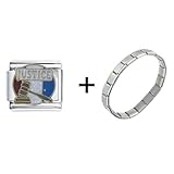 Together with a stainless steel starter to match your Itallian charm bracelet. This Italian charm features a judge's court gavel below the word JUSTICE all in front of our nation's colors of red, white, and blue. Crafted and authenticated by Pugster Inc. Links: 1 Metal: STAINLESS STEEL Other: GLITTER Paint Type: ENAMEL Plating: GOLD TONE
